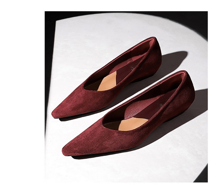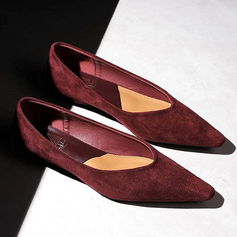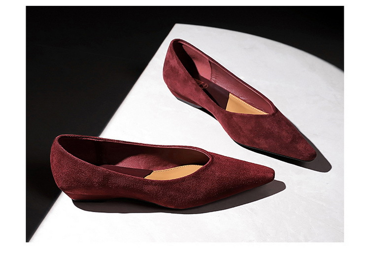 New Women's Pointed Toe Suede Low Heeled Wedge Shoes