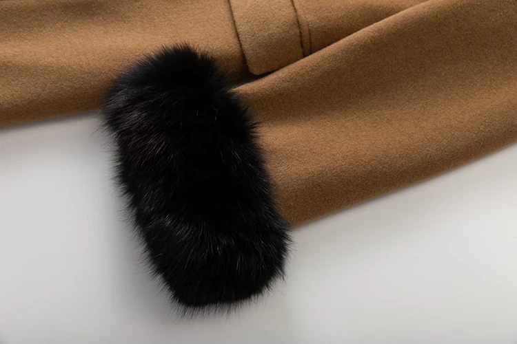 Women's Fur Turn-Down Collar Fur Trimmed Sleeves Double Tweed Winter Outerwear