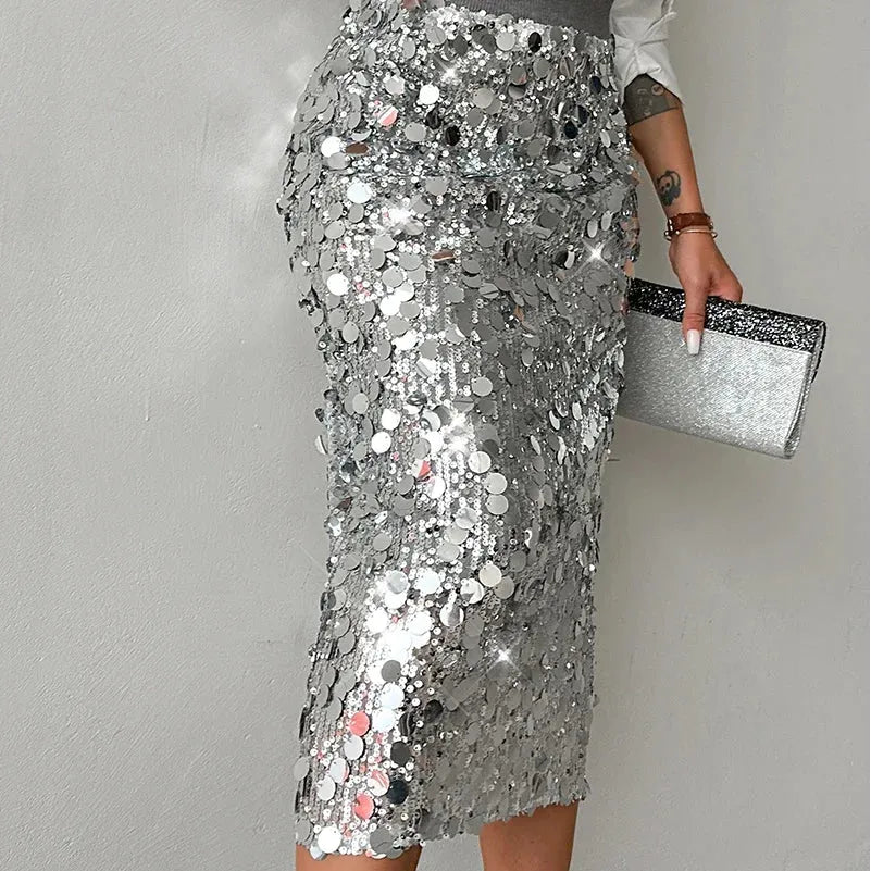 Women's Sequined Midi Skirt With Side Slit