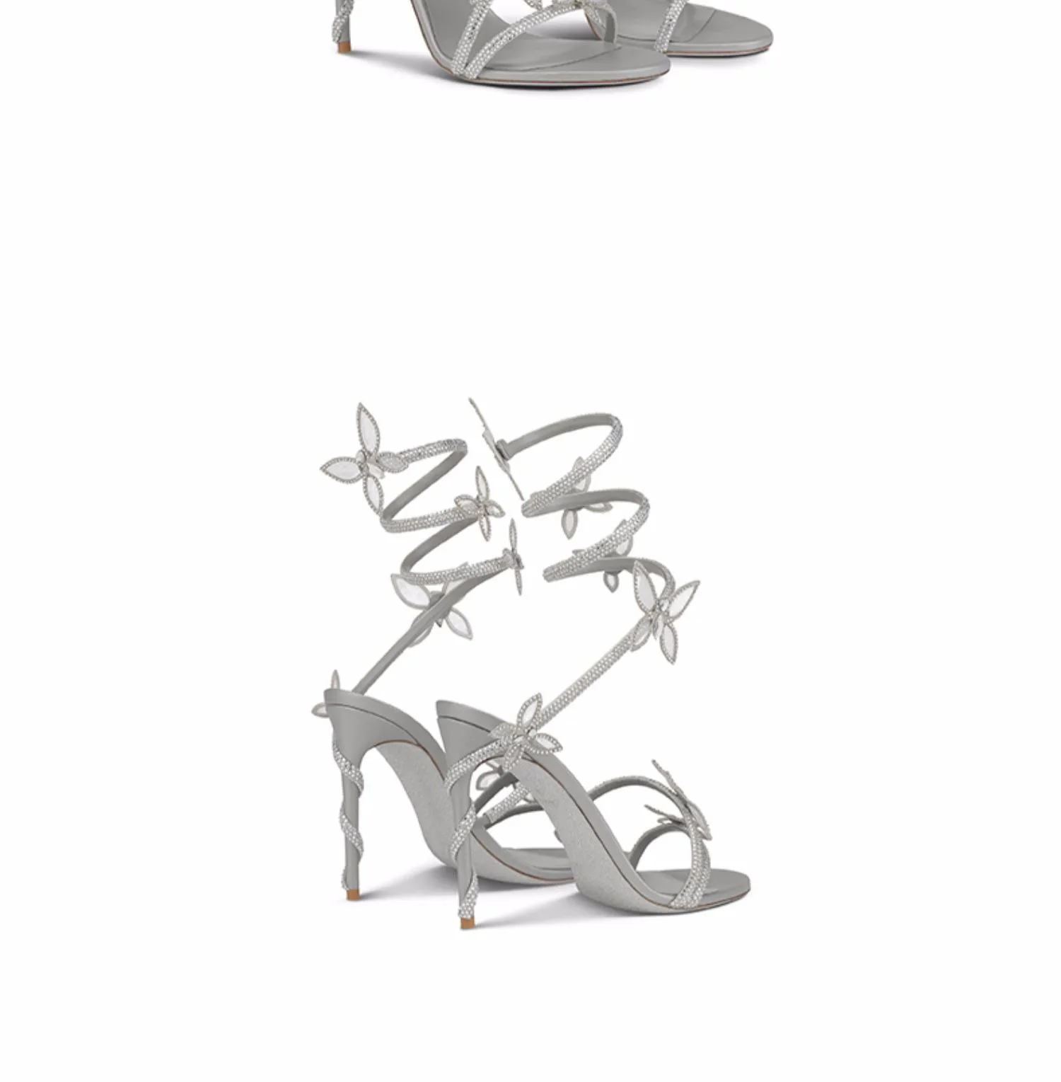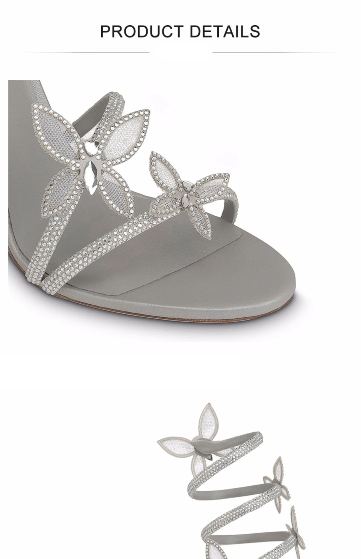 Women's Crystal Rhinestone Butterfly Flower High Heels Sandals