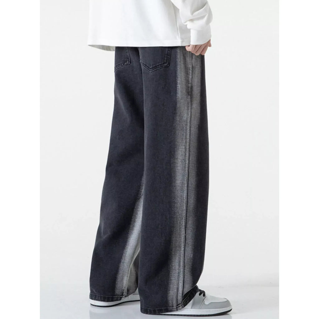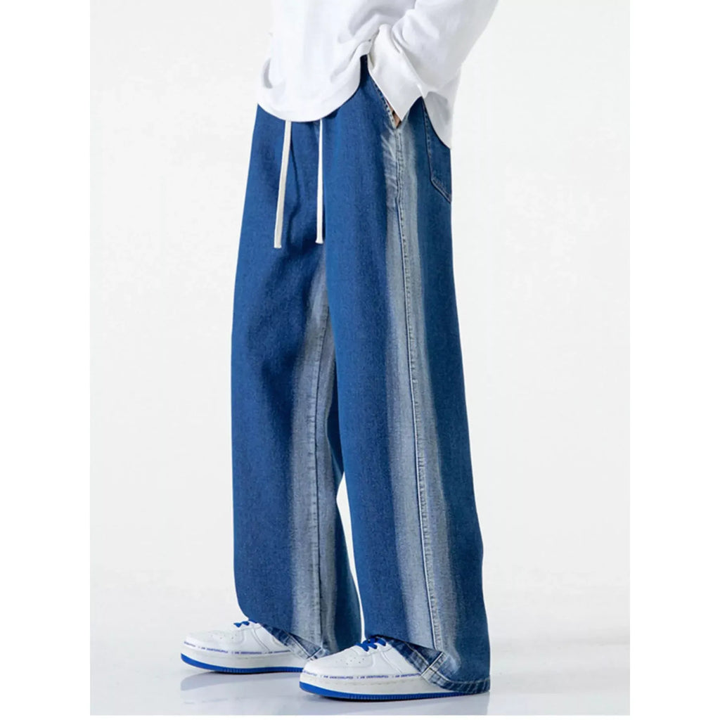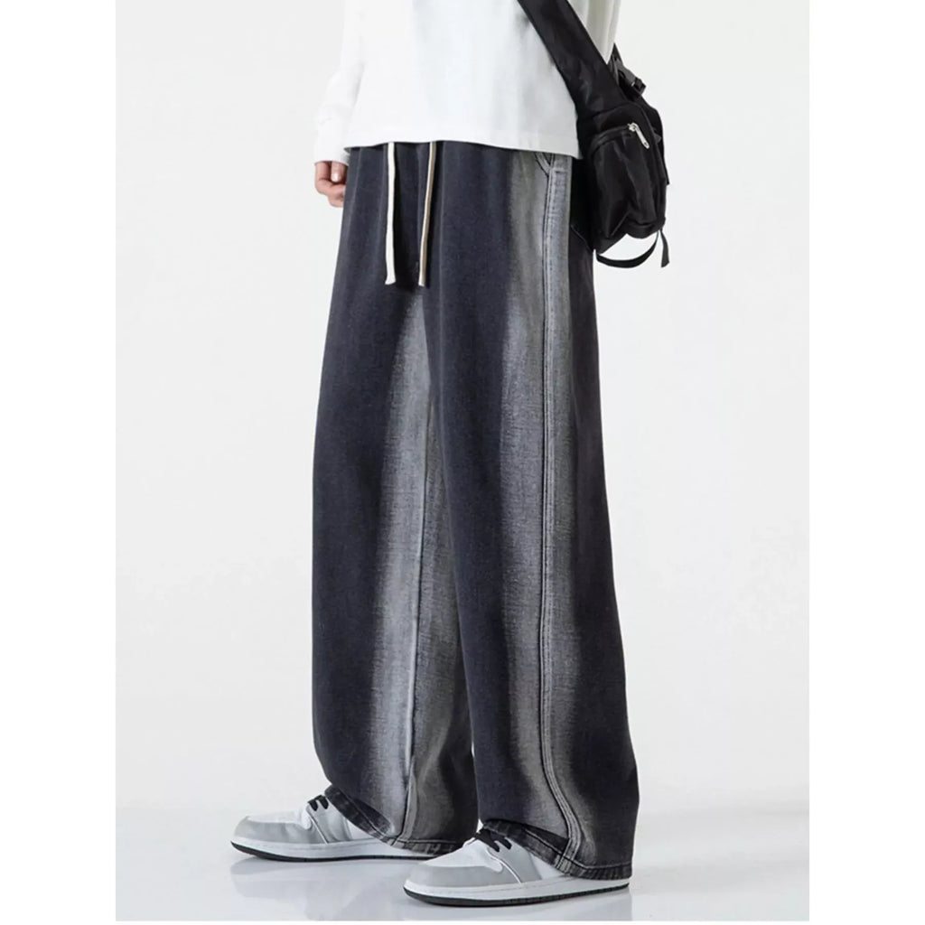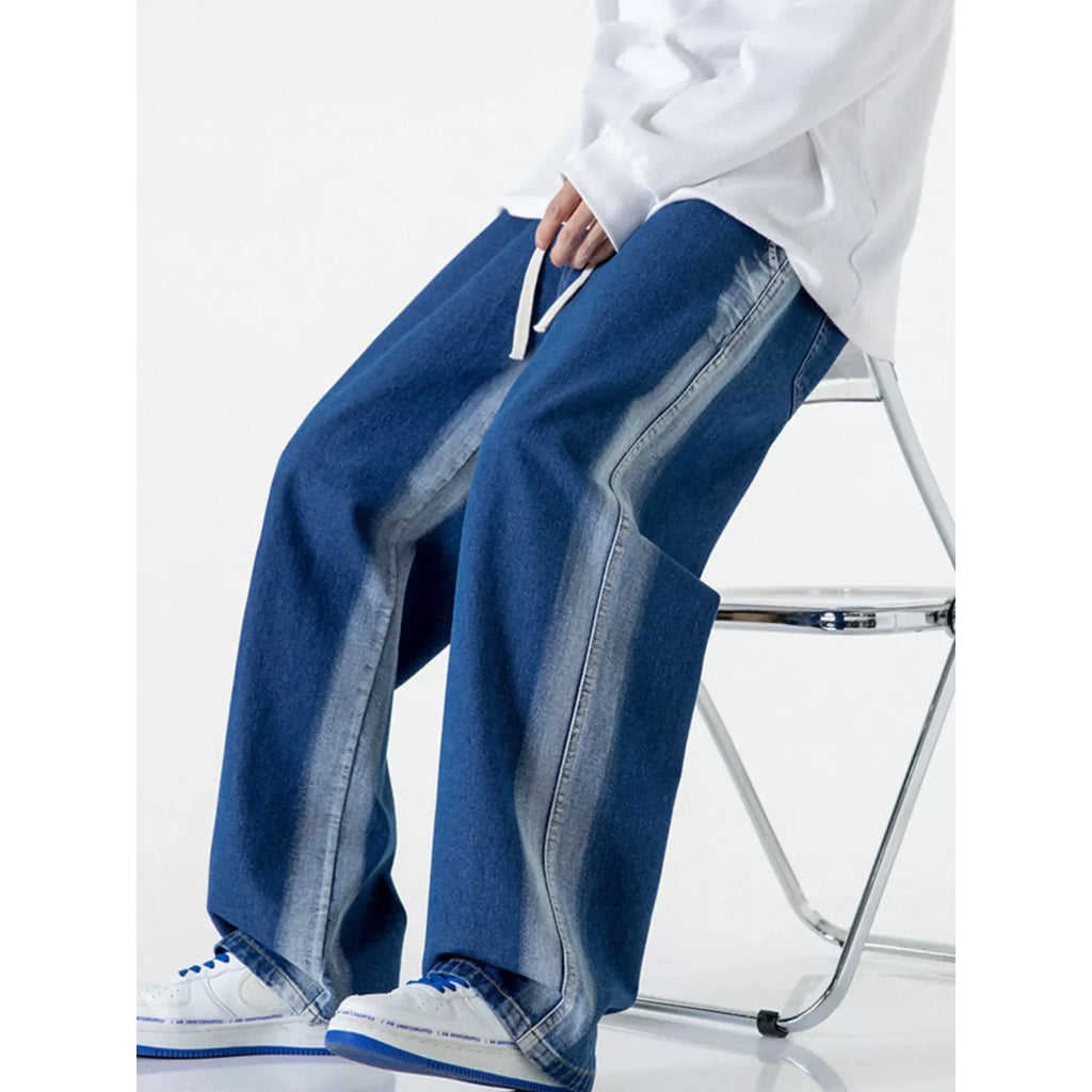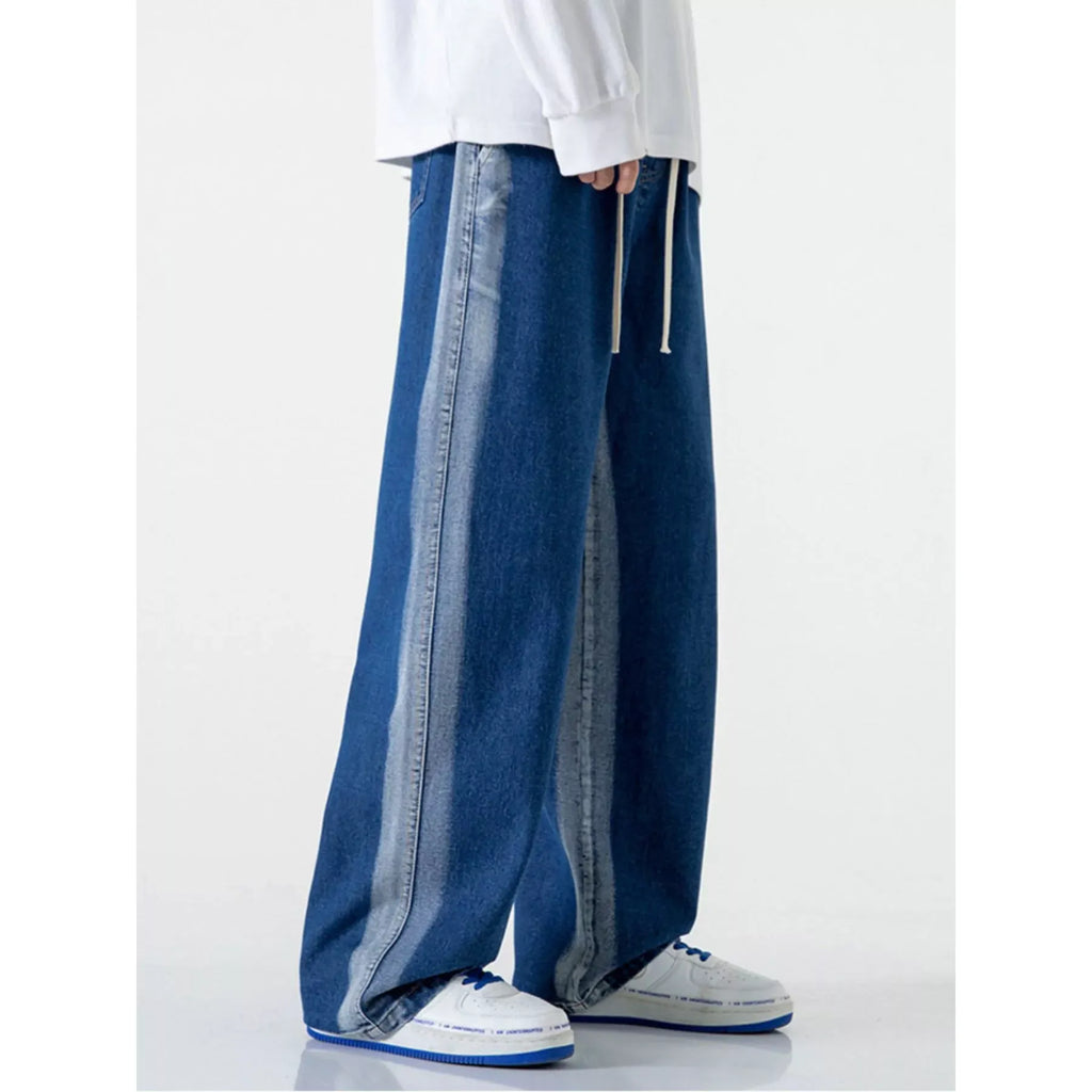 Experience comfort and style with these men's wide-leg jeans crafted from soft cotton denim. Designed for freedom of movement, they feature a modern fit with a distinctive side wide stripe and an adjustable drawstring waist for a personalized fit. Available in classic black and blue, plus sizes ensure a perfect match for every body type. Ideal for mid-season and cooler days, these jeans combine trendiness with practical warmth and breathability. Elevate your wardrobe with jeans that offer both ease and contemporary appeal.