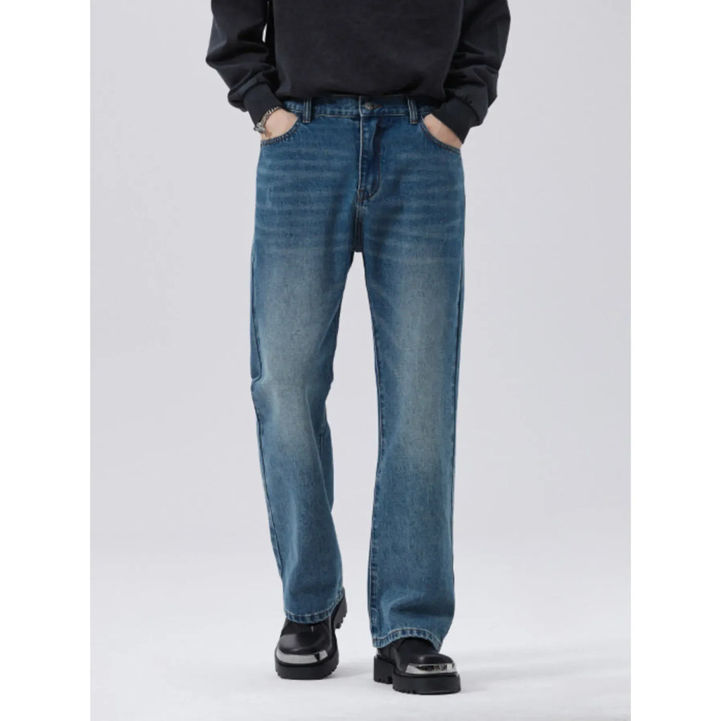 Men's Full Size Washed Straight Leg Jeans Plus Size