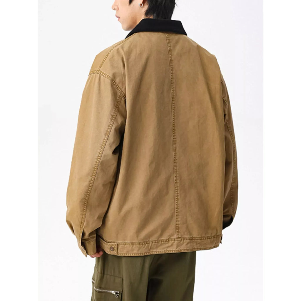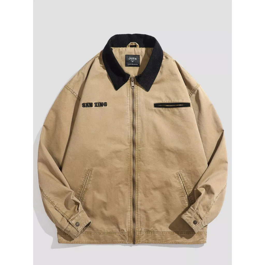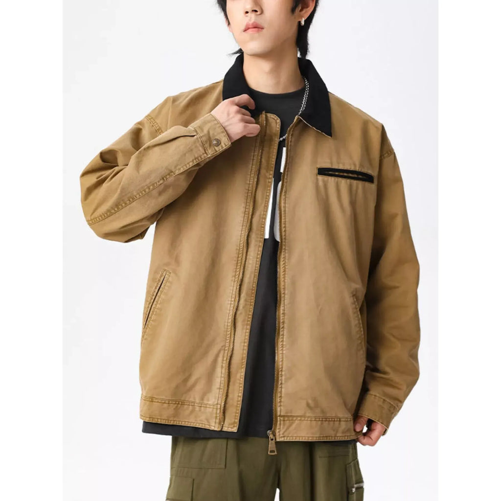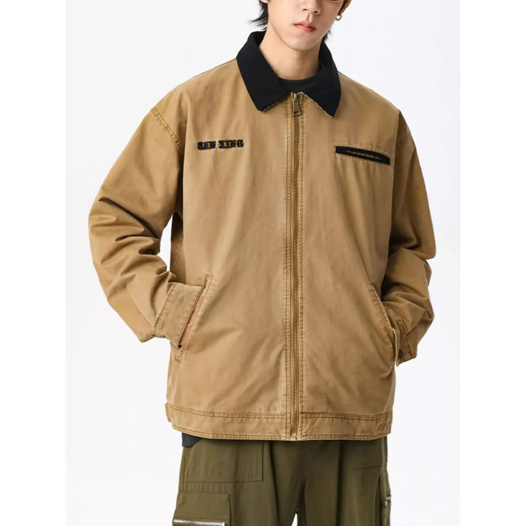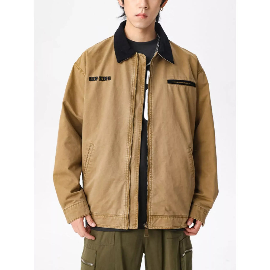 Men's Plus Size Vintage Zipper Front Jacket with Contrast Collar