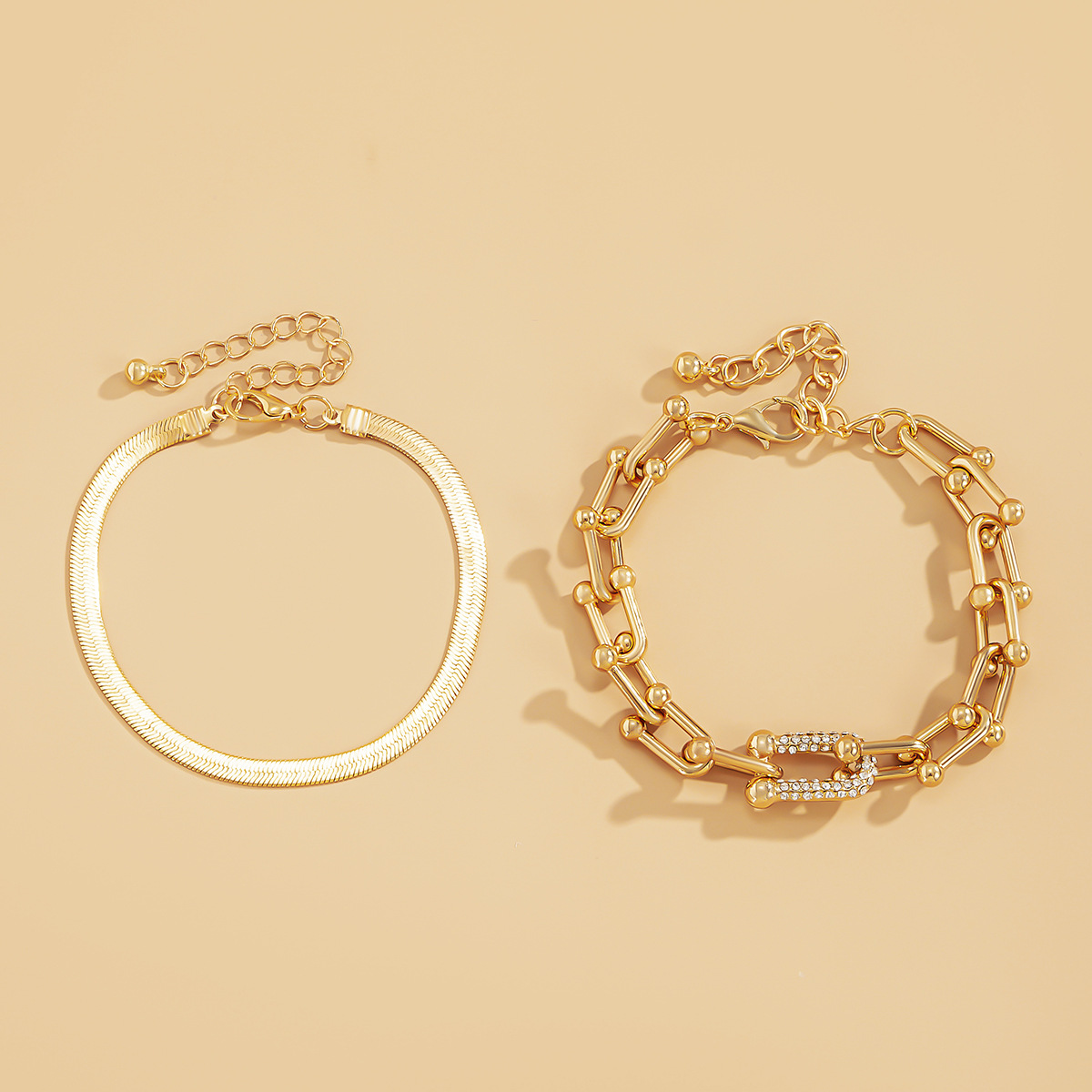 U-shaped Link Rhinestone And Snake Link Duo Bracelet Set