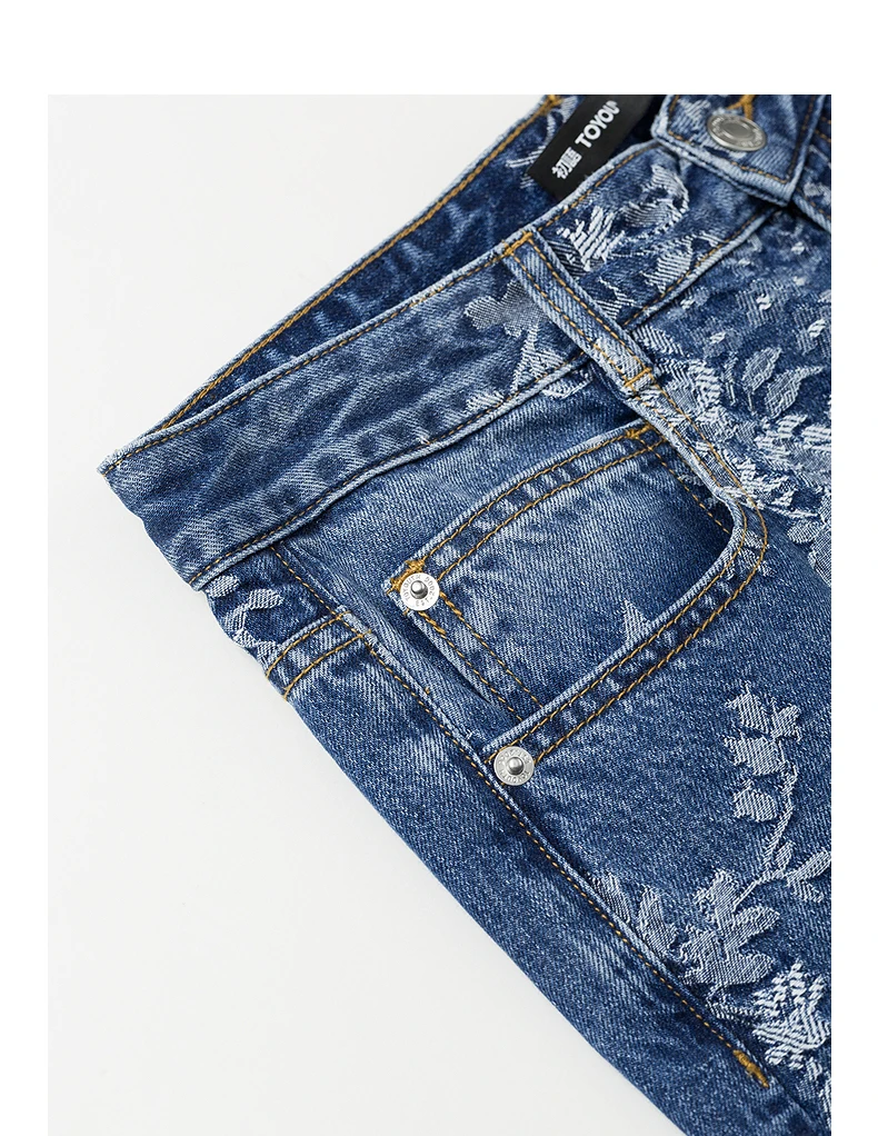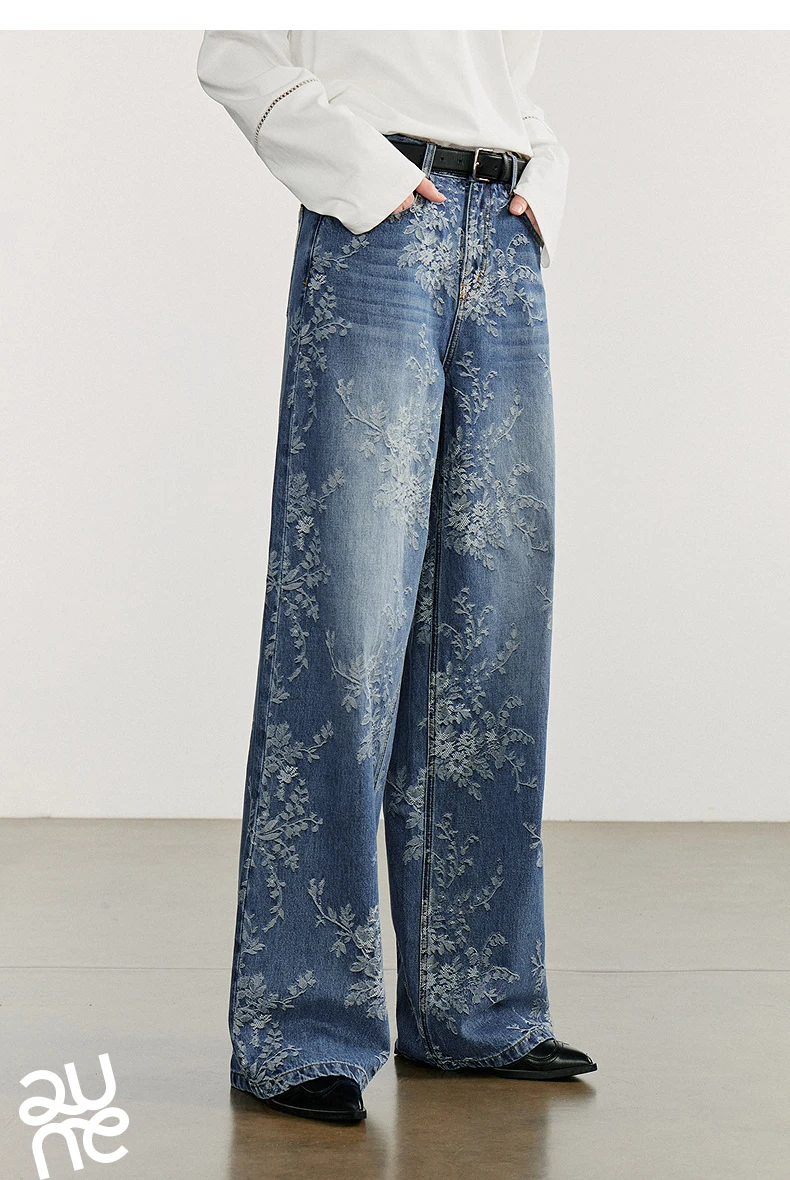 Women's Autumn Wide Straight Leg Jacquard Denim Pants